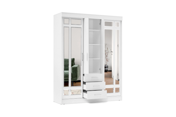 Четырехдверный шкаф-купе Маэстро (Миф) продается в интернет-магазине mebelin-zhukovskiy.ru по цене 23 872 руб. Есть доставка по Жуковскому и Московской области. Возможность подъема на этаж и сборки уточняйте у менеджера по телефону 8(800)505-27-11.